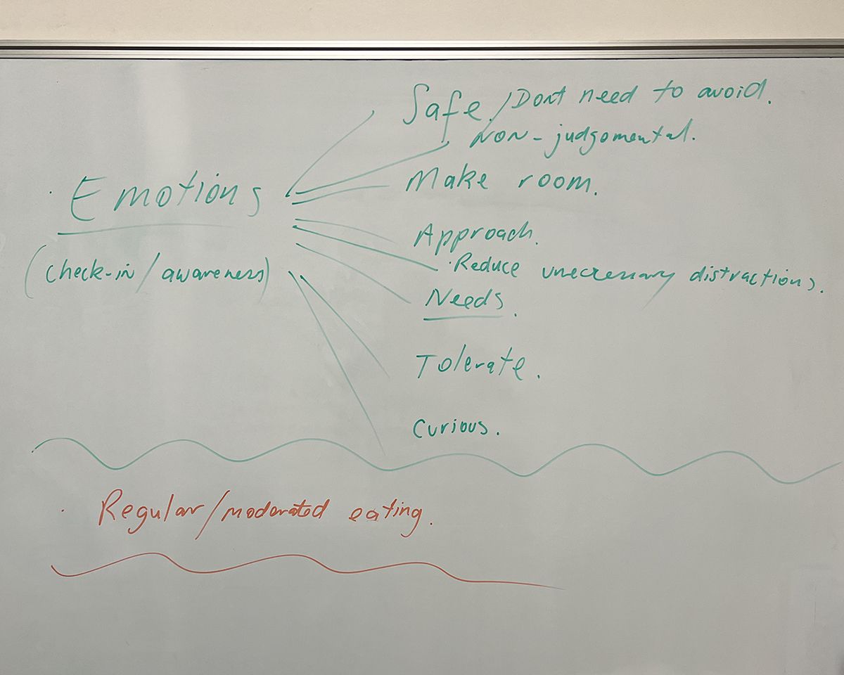 Learning about food and emotions on a whiteboard. The shame I felt was terrible. January 2022.